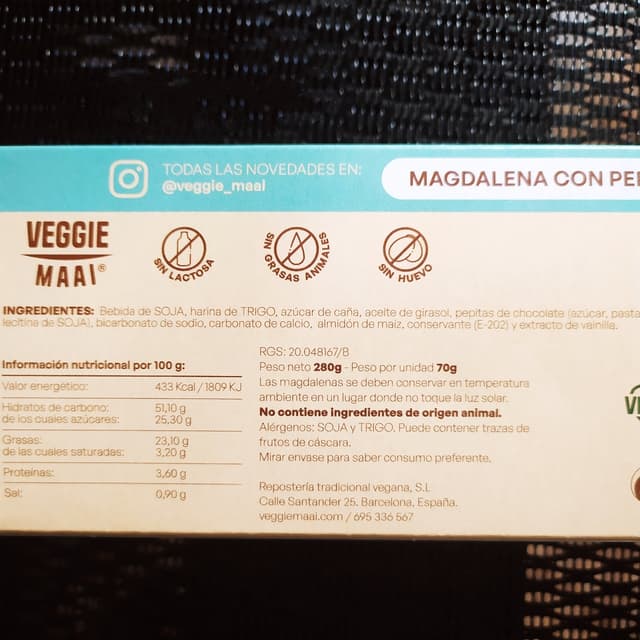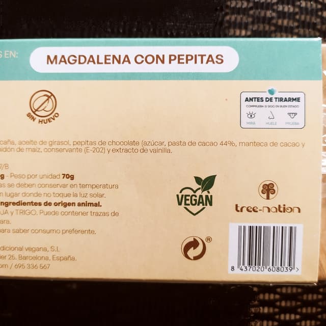Riquísimas magdalenas con pepitas de chocolates. La textura es esponjosa, para nada seca y sosa. Para ser bollería de tipo "industrial" tiene su mérito. Vienen 4 unidades.