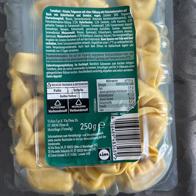 Tortellini vegani molto buoni trovati alla lidl in Germania
