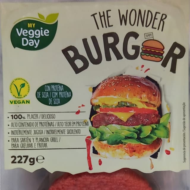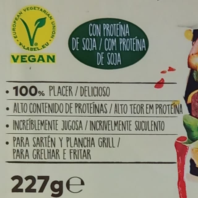 Hamburguesa a base de proteína de soja. Alto contenido de proteínas. Blíster de plástico de 2 hamburguesas. 227 g. 🍔