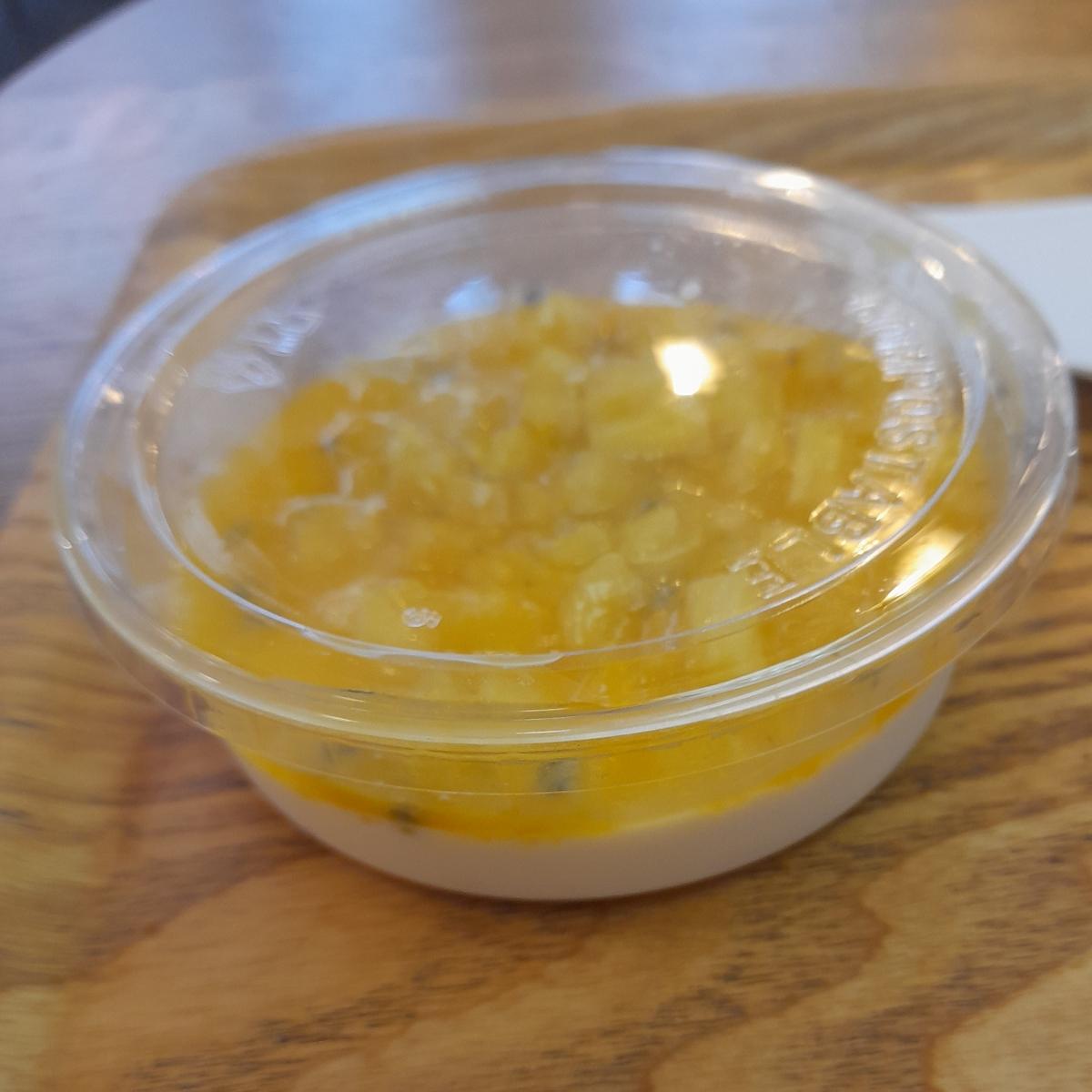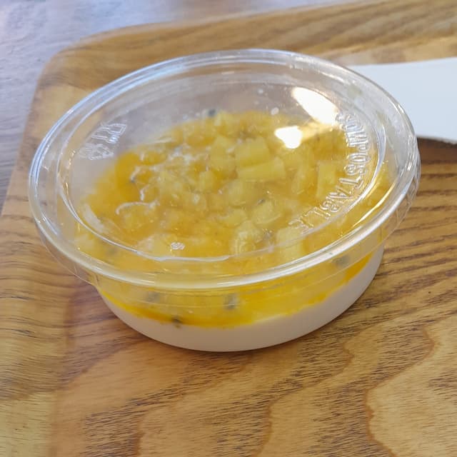 Healthy dessert with soy cream and passion fruit, it had also maple syrup 🍁