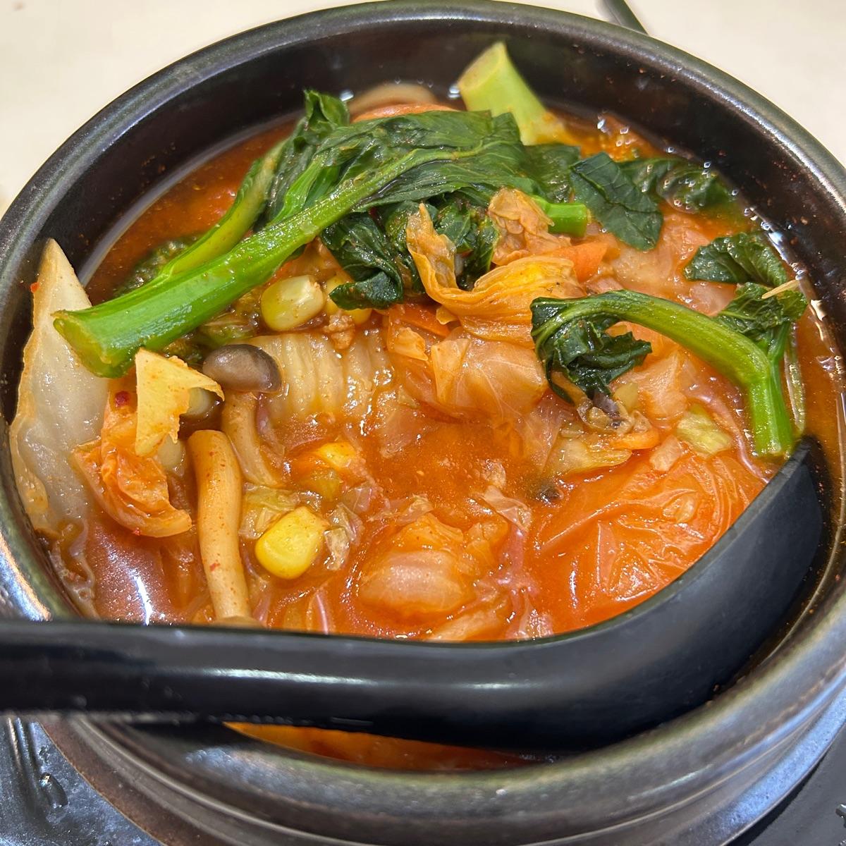 simply DELICIOUS!!! I loved how many veggies were in this. The Kimchi broth was so rich and delicious, with the perfect level of spice. And the gyozas to accompany were so yummy!