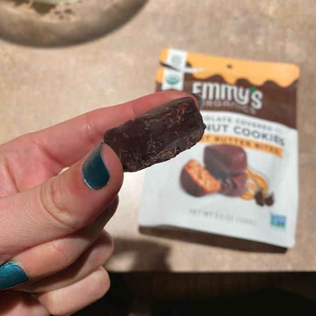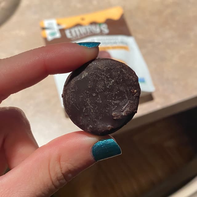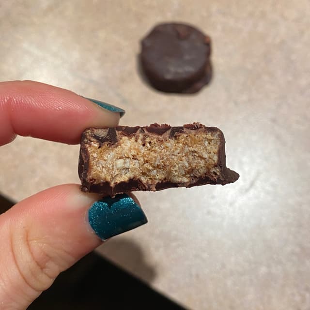 These are for all you chocolate pb lovers! 😛 they have a hint of coconut too. They are about 2 bites each. I keep these in the fridge for a chilly treat (they get too hard in the freezer). The bag is small and pricey for what you get though, so I only ever buy these if they go on sale.