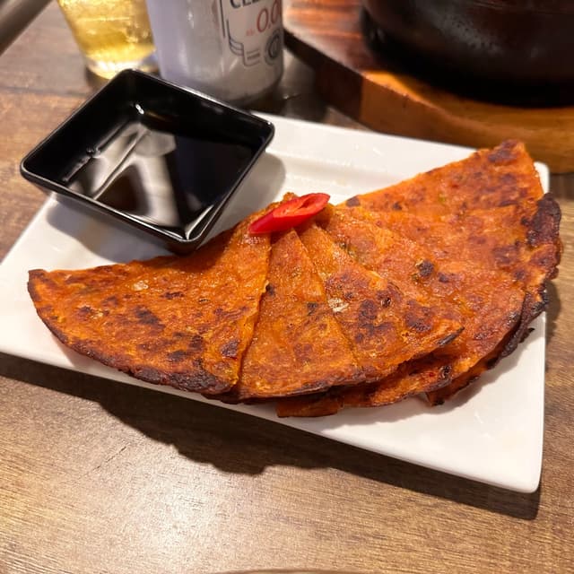 This was kind of a letdown 👎 I’m not sure if I’ve just become spoiled having a housemate so excellent at whipping up midnight #kimchipancakes but for what it’s worth I think The Boneless Kitchen does a better job at this https://www.abillion.com/dishes/the-boneless-kitchen-kimchi-jeon-%EA%B9%80%EC%B9%98%EC%A0%84-10237056 🤷‍♀️ It was too dry and oddly, not sticky enough. Luckily there are other lovely things on the menu to try 🤞 Maybe next time!