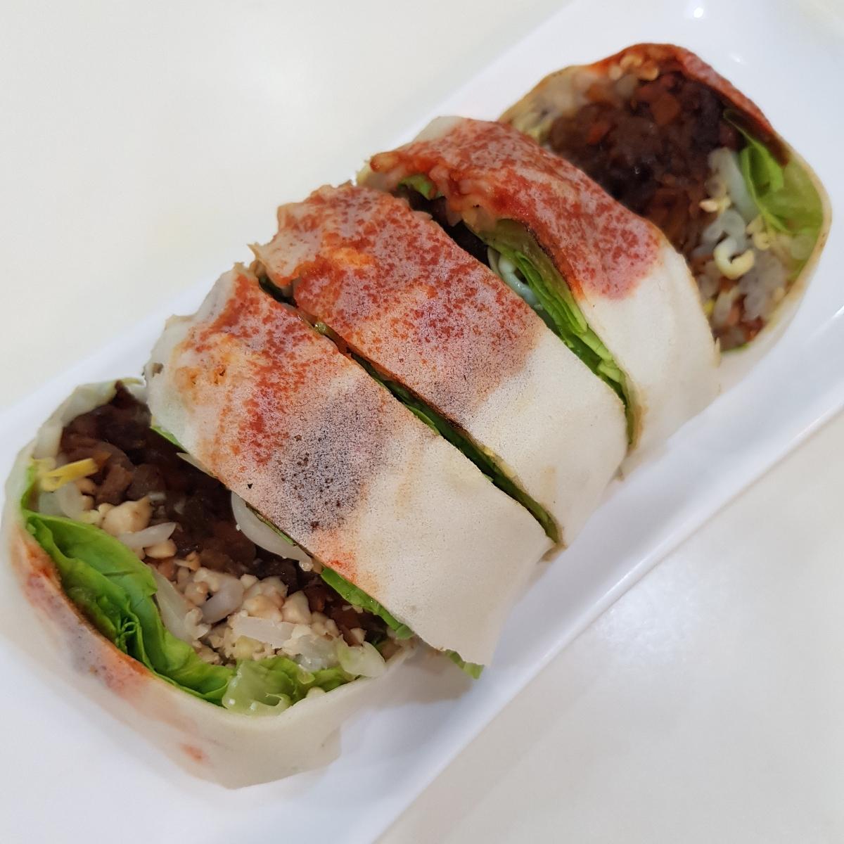 🇸🇬 I really appreciate Sunnychoice having popiah on the menu. I like how there is minimal oil used (theorectically popiah doesn't need much oil unless the owner choose to cook the fillings in oil..), and the price is largely justified by the larger than normal size, and organic ingredients (well... I assume mostly organic). Taste relatively light and refreshing, with good umami flavours too 🤩 #vegansnacks #veganinsingapore #singaporefood