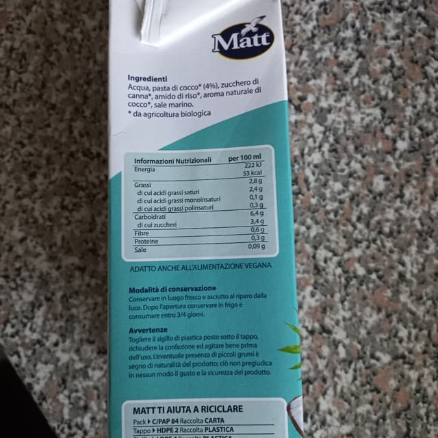 1 L di latte di cocco bio, leggermente dolce, poco pastoso e molto dissetante.