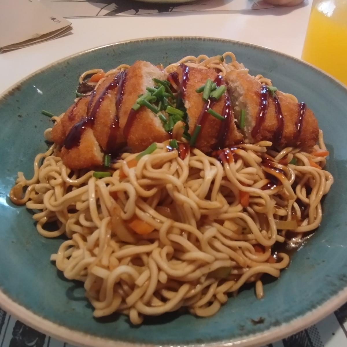 Antes de ser vegana me gustaba mucho esta versión del plato, así que me encantó ver qué han añadido su versión vegana con heura. Ya había probado otras versiones de heura en Udon pero no estaban tan sabrosas como las opciones sin ella. En este caso, el empanado estaba muy conseguido, pero al resto del plato le faltaba sabor. Simplemente añadiendo algunos ingredientes más como en el resto de platos estaría perfecto. De momento, me gusta que exista la opción pero no sería mi prioridad #asianfood #yakisoba #heura #udon