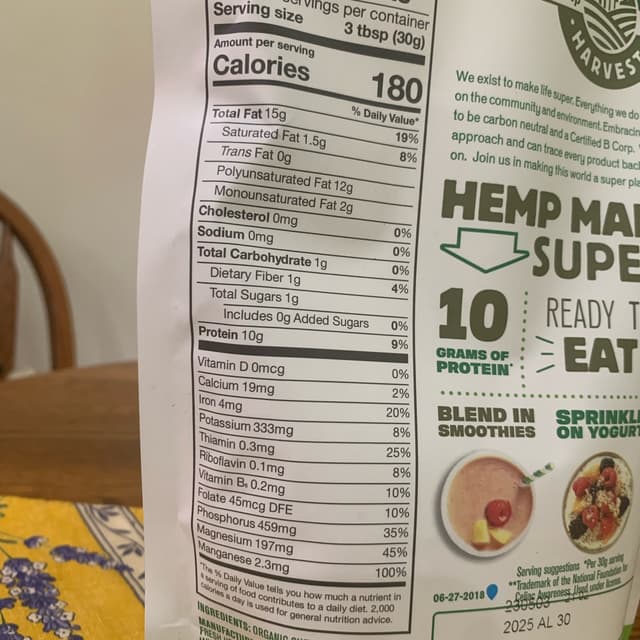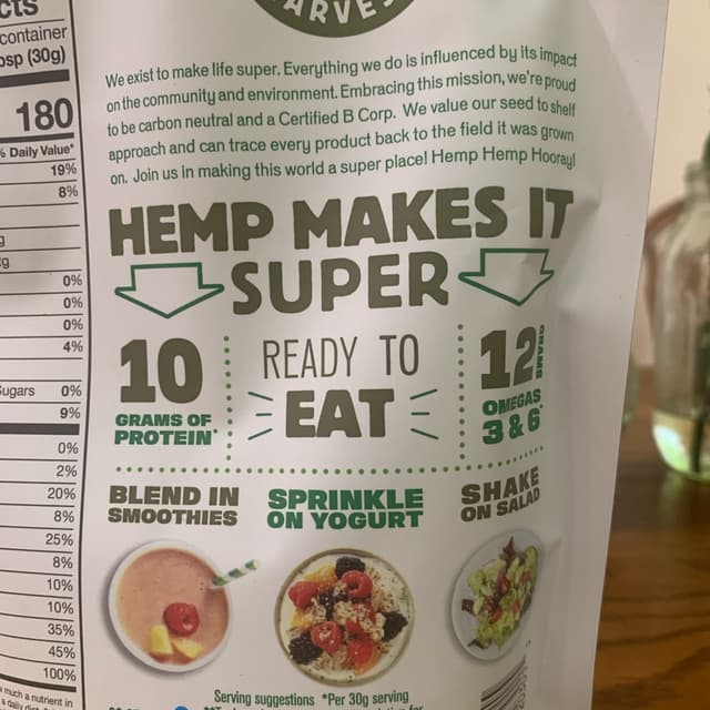 I love these hemp hearts:) I love to add them to all sorts of dishes because they are a nutritional powerhouse. They have a mild nutty flavor. I appreciate that they have 10g of protein per serving. Definitely recommend. #veganprotein