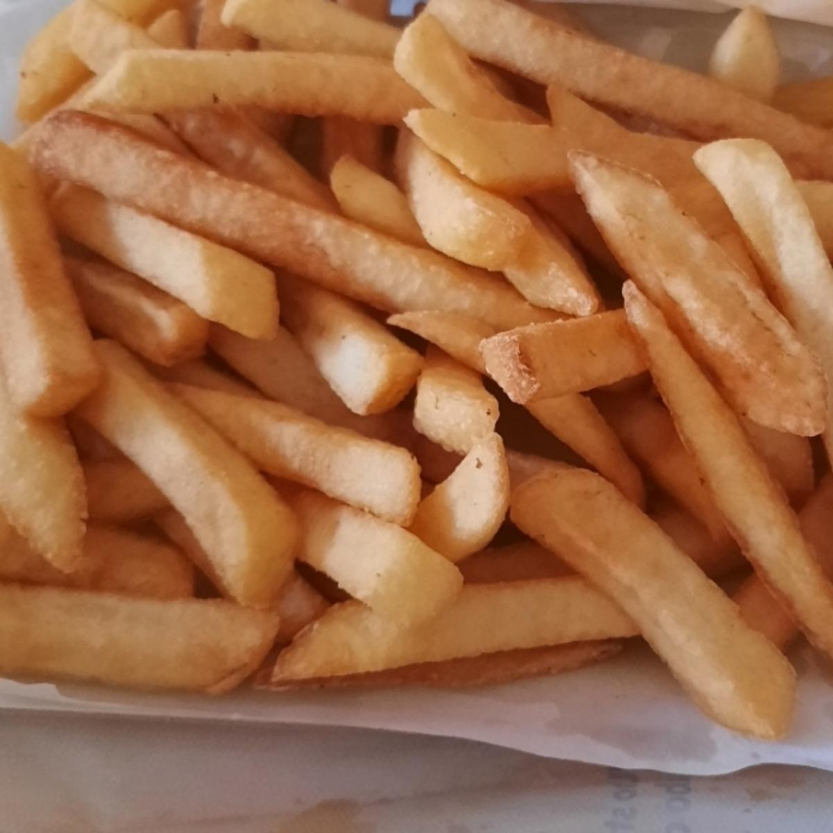 Patate fritte di quelle surgelate a taglio spesso, davvero molto buone, croccanti. A 2€ a porzione, ma bastano per 2.