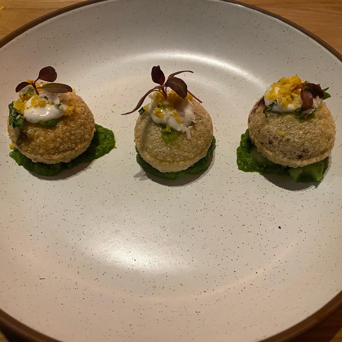 Spinach da hi puri, lime coconut sambol, black current tamarind chutney… ambiente e personale molto carino. Il sapore di questo piatto e’ molto particolare si sente tanto il tamarindo ed e un po’ piccante.