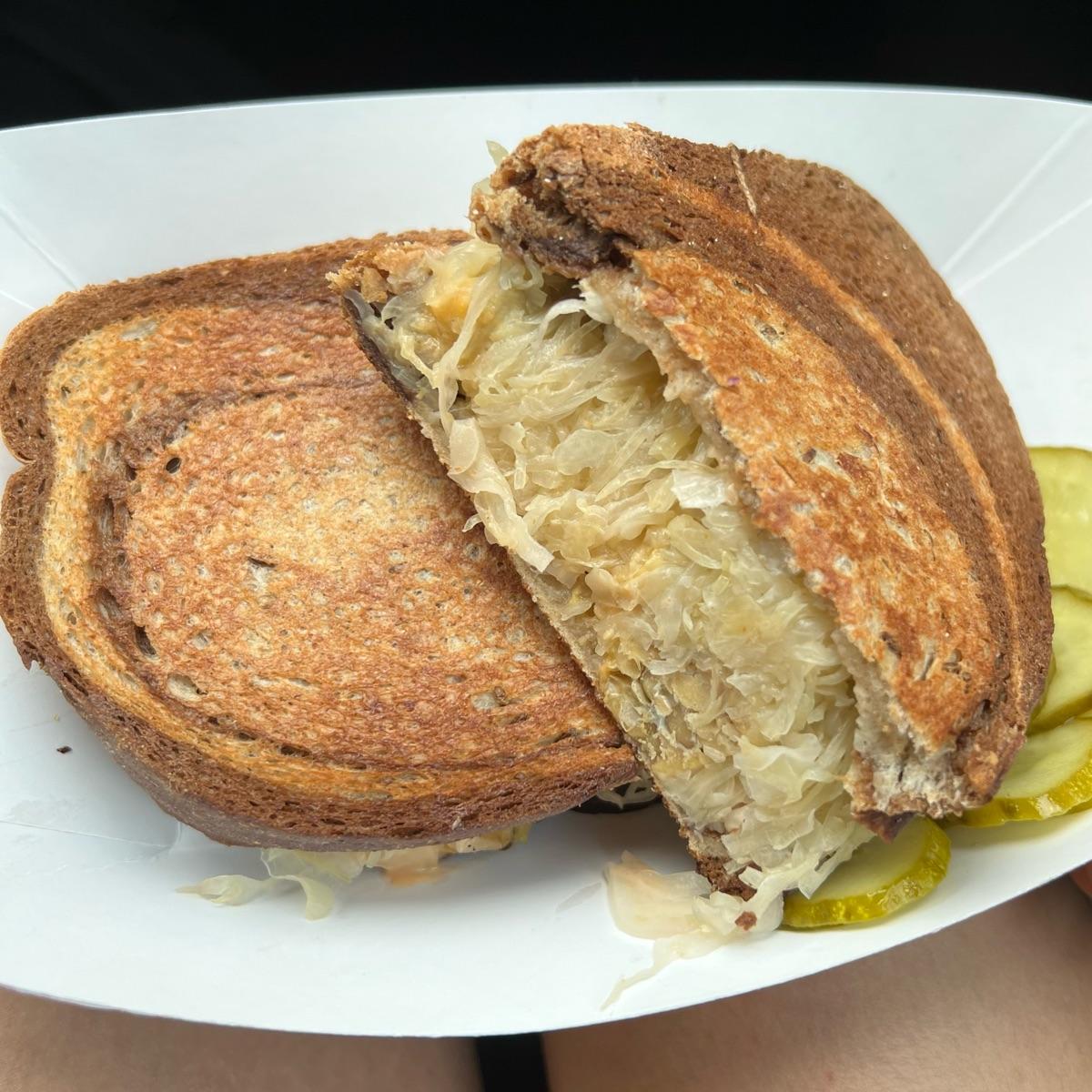 first of all, i loved that this sandwich was on marbled rye. i also appreciated the hefty amount of sauerkraut and the side pickles. the tempeh was well-prepared too. although i don’t think it’s like hyper-realistic or anything, it was a good reuben and i feel like it was a really good sandwich for the low price!