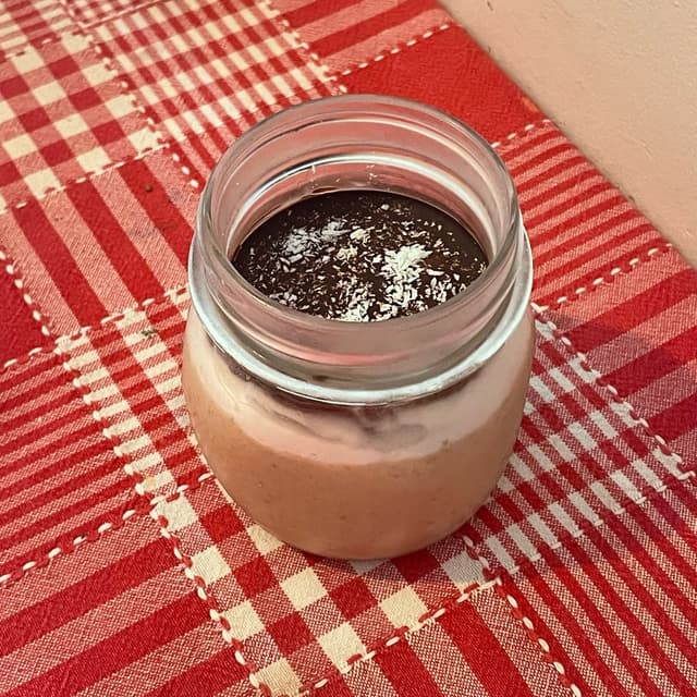 Successivamente ho realizzato uno strato con lo yogurt di cocco e uno strato con del #cioccolato sciolto. Ho lasciato il composto riposare una notte e poi era pronto da gustare!🤤🍫🥥