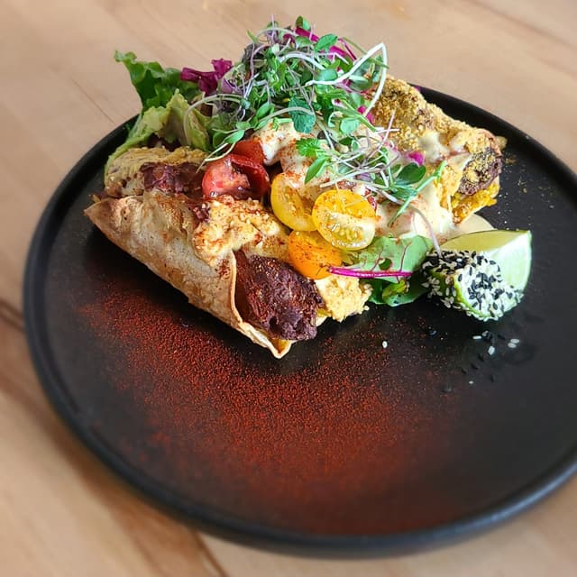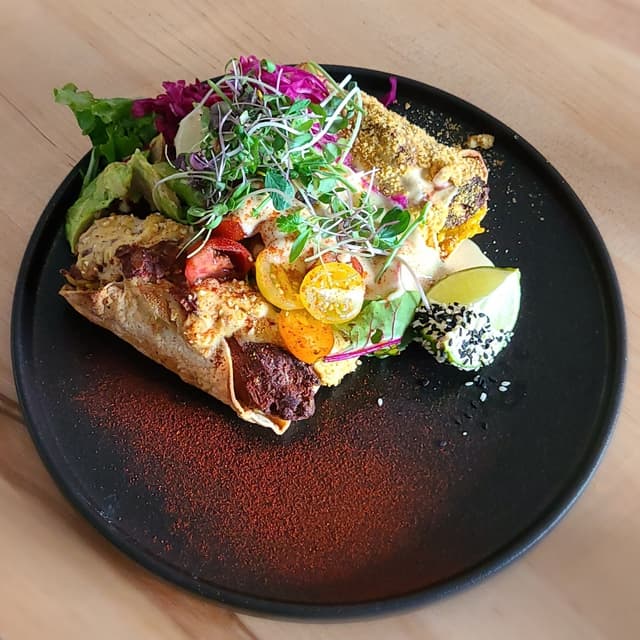 Jackfruit Enchiladas!! Shredded jackfruit, sour cream, pickled vegetables, and fresh avocado served with mole (pronounced MOH-lay). This meal was full of many textures: crispy, crunchy, creamy, and chewy. So fresh and filling!! Even the plating was a work of art! The atmosphere was very nice. My husband and I enjoyed our date night dinner. The soothing romantic music, restaurant ambiance, menu, wall decor, lights, style, restaurant furniture, and color palette was absolutely wonderful! Our waitress, Kiara, was friendly and polite. We left the Greenhouse Canteen completely satisfied! If you are visiting Columbus, Ohio, anytime soon, then you must check this place out. 💚