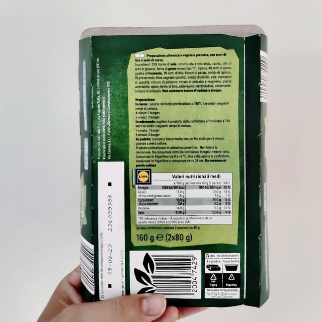 Un ottimo burger dal punto di vista nutrizionale: ricco in proteine e fibre e povero di grassi saturi.