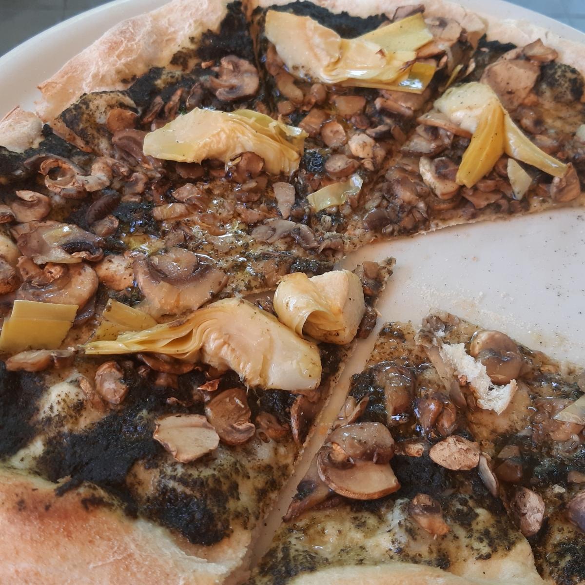 In seguito a una piccola vacanza al Relais La Coroncina a Belforte del Chienti nelle marche io e mio marito ci siamo trovati ad esplorare la zona nei dintorni scoprendo che è davvero carente di offerta vegan, abbiamo trovato solo agriturismi tradizionali che forse un piatto di pasta e qualche verdura grigliata ce l'avrebbero rimediato ma abbiamo preferito farne a meno 😅 abbiamo scoperto però questo giardino delle farfalle dove oltre a visite guidate alla scoperta delle farfalle autoctone offrono anche servizio di pizzeria. Non c'erano opzioni vegan ma lo staff ed in particolare la guida stessa (che sta anche in cucina) si è dimostrata super disponibile e attenta alle nostre richieste. Ci ha proposto una base di ortica con carciofini sopra a cui abbiamo fatto aggiungere i funghi. L'impasto è preparato in casa e immagino anche l'ortica visto che era nel giardino delle farfalle quando l'abbiamo poi visitato. Equilibrio tra croccantezza e morbidità perfetto, veramente gustosa.