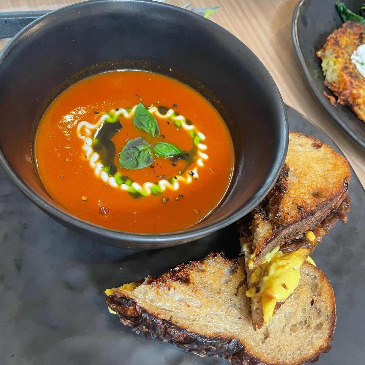 The soup is very good. The toastie on the other side did not work for me at all. Too much marmite, too many onions. I would have loved a simple ‘cheese’ toastie, which this isn’t. I’d order it again, but without bread