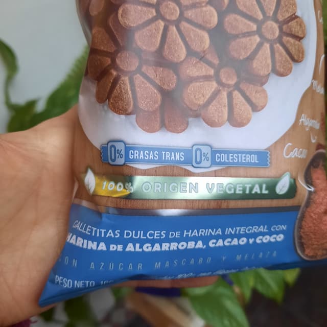 0% grasas trans 0% colesterol elaboradas con harina integral endulzadas con azucar mascabo y melaza 100% origen vegetal