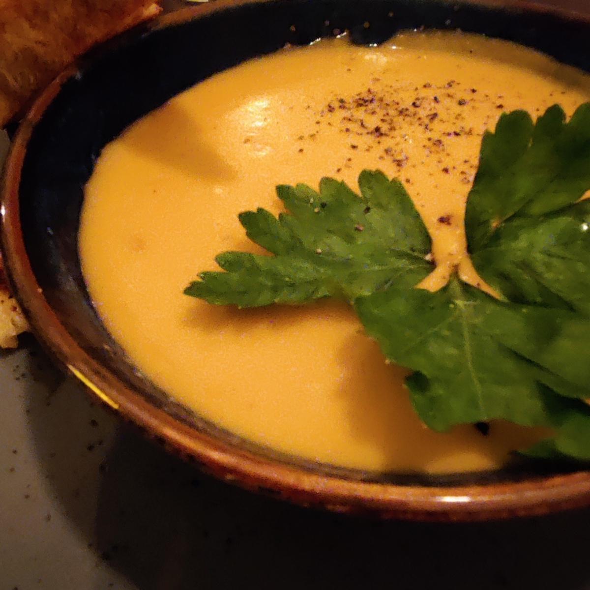 Red lentil soup: Amazing! All the plate in the menu are vegan, a hygge place to eat in the old town