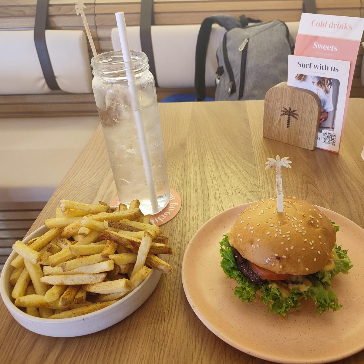 Nice Cheeseburger and a decent portion of chips. Nicely presented and good in taste. Staff was friendly. Paper towels, paper straws, and bamboo dishes.