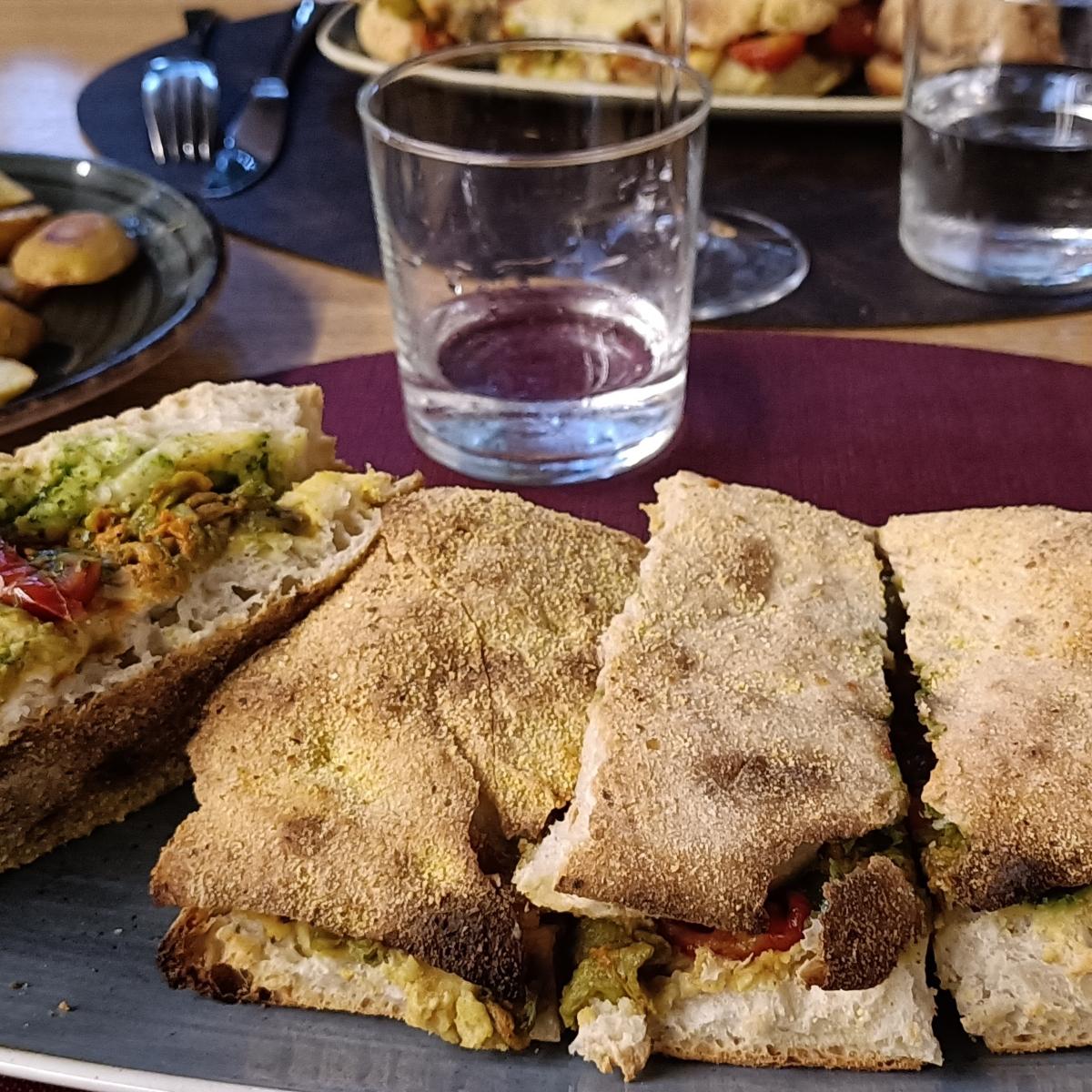 Trattoria con un menù tradizionale e nessuna voce esplicitamente vegana, ma su richiesta ci sono numerose varianti per creare ad hoc una pizza vegana non banale. In foto base Polentizza (un loro marchio registrato a base di farina di mais) farcita con crema di ceci, fiori di zucchina, pomodorini confit e crema al basilico. Personale gentile, disponibile e preparato.