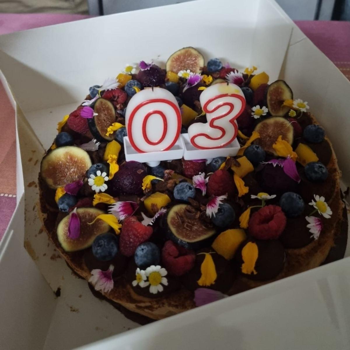 Era veramente particolare, decorata con frutta fresca e fiori commestibili 🤗