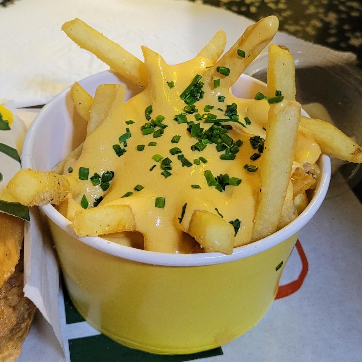 El mejor queso cheddar vegano que probé hasta el momento. Cremoso y sabroso. Las papas excelentes.