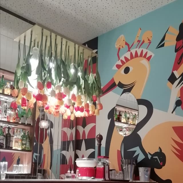 Cucina italiana (i vegani o i curiosi possono scegliere da un menù a loro dedicato) in un ambiente molto particolare, dalla vetrina con le bottiglie, ai colorati disegni di stile Futurista, alle scelte d'arredo, al bagno delle signore con le foto di Marlon Brando e di James Dean.