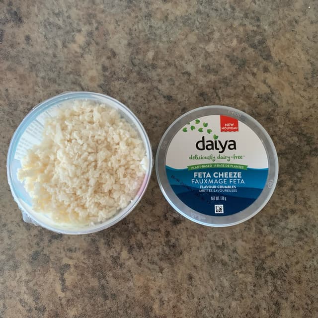 I picked up this container of plant-based feta cheeze crumble at No Frills. It was priced at 2 for $10, which I thought was a good deal.