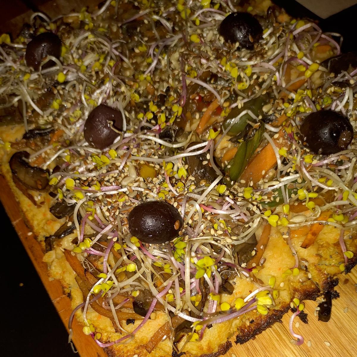 Excelente plato. Original, sabroso, saludable, sin gluten, vegano. 10/10. Le agregué apenas sal. La masa que elegimos fue de coliflor, pero también hay de espinaca. Encima el lugar tiene videojuegos retro tipo arcade. Aguante.