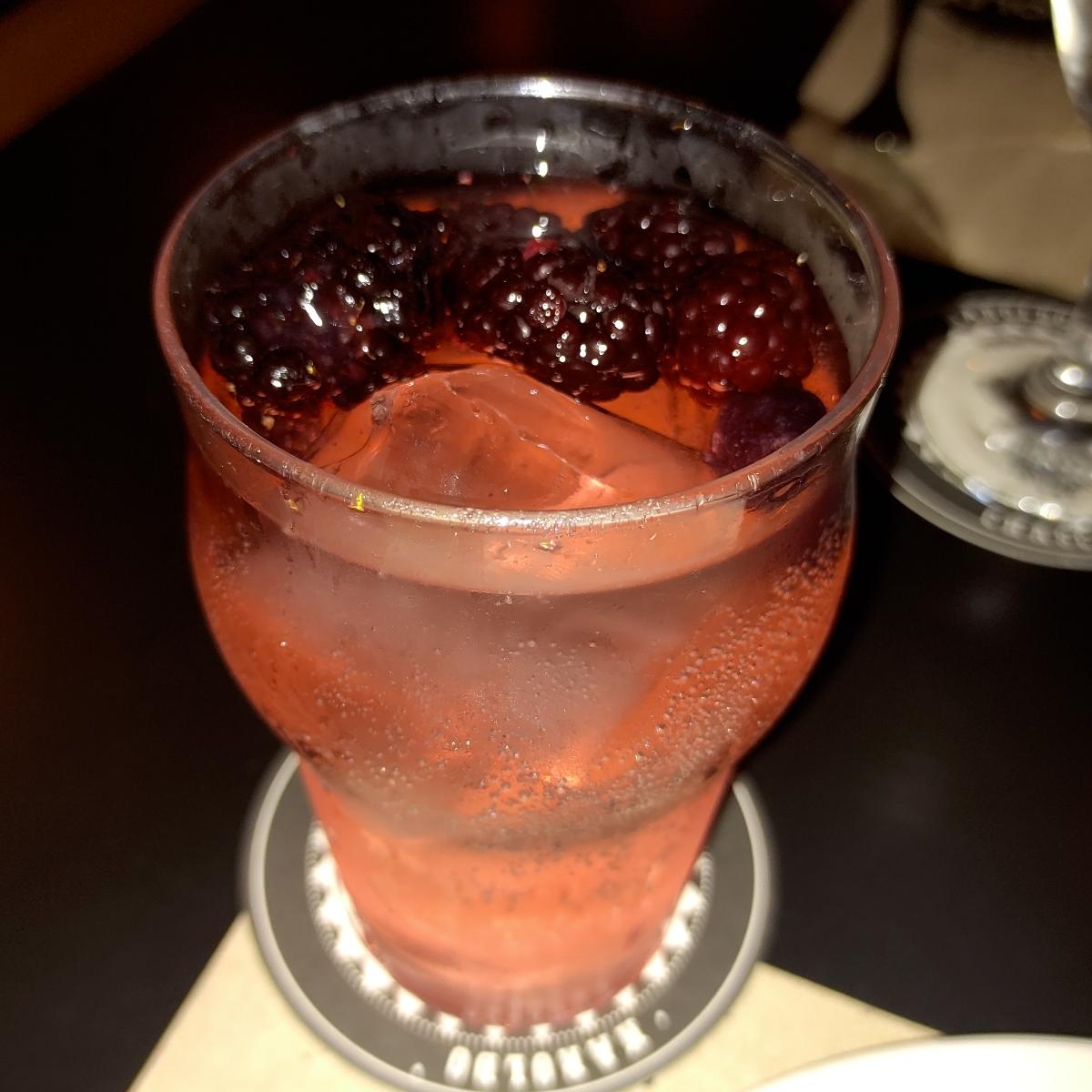 Tienen un montón de variedades de gin tonic. Este de frutos rojos tiene moras inmensas. El sabor es muy suave y al final te podés comer las moras 🙌