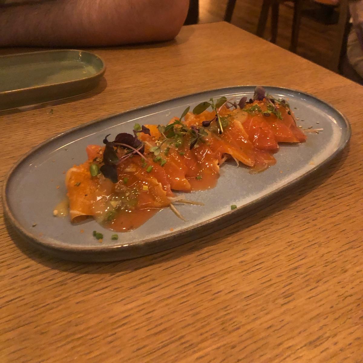 It was very good and the resemblance to an actual salmon carpaccio was crazy! it’s definitely thanks to the lovely dressing this carpaccio comes with, and on top of that the amazing consistency that this plant-based salmon has. I definitely suggest you try this if you visit Nori Way. #carpaccio #sashimi #sushi #vegansushi #veganrestaurant #milano
