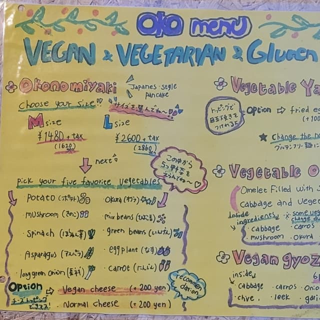 I wanted to try a plant based okonomiyaki (Japanese savoury pancake) and found this place though the happy cow app. It's a cool/funky place and a one woman show! You can pick 5 vegetables for your okonomiyaki; I had green onion, carrot, eggplant, okra and Asparagus.