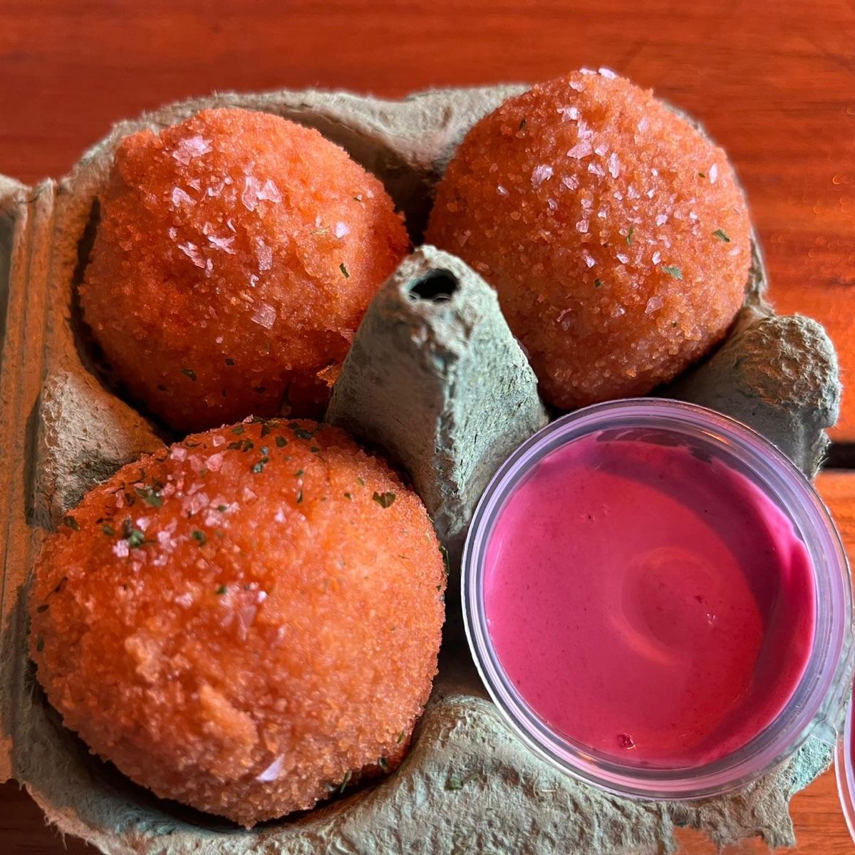 I was so disappointed by this arancini. It had little to no taste and was only saved by the pepolata mayo. It’s presented nicely, but the arancini itself tastes like over-boiled plain rice. There isn’t much more to say about it!