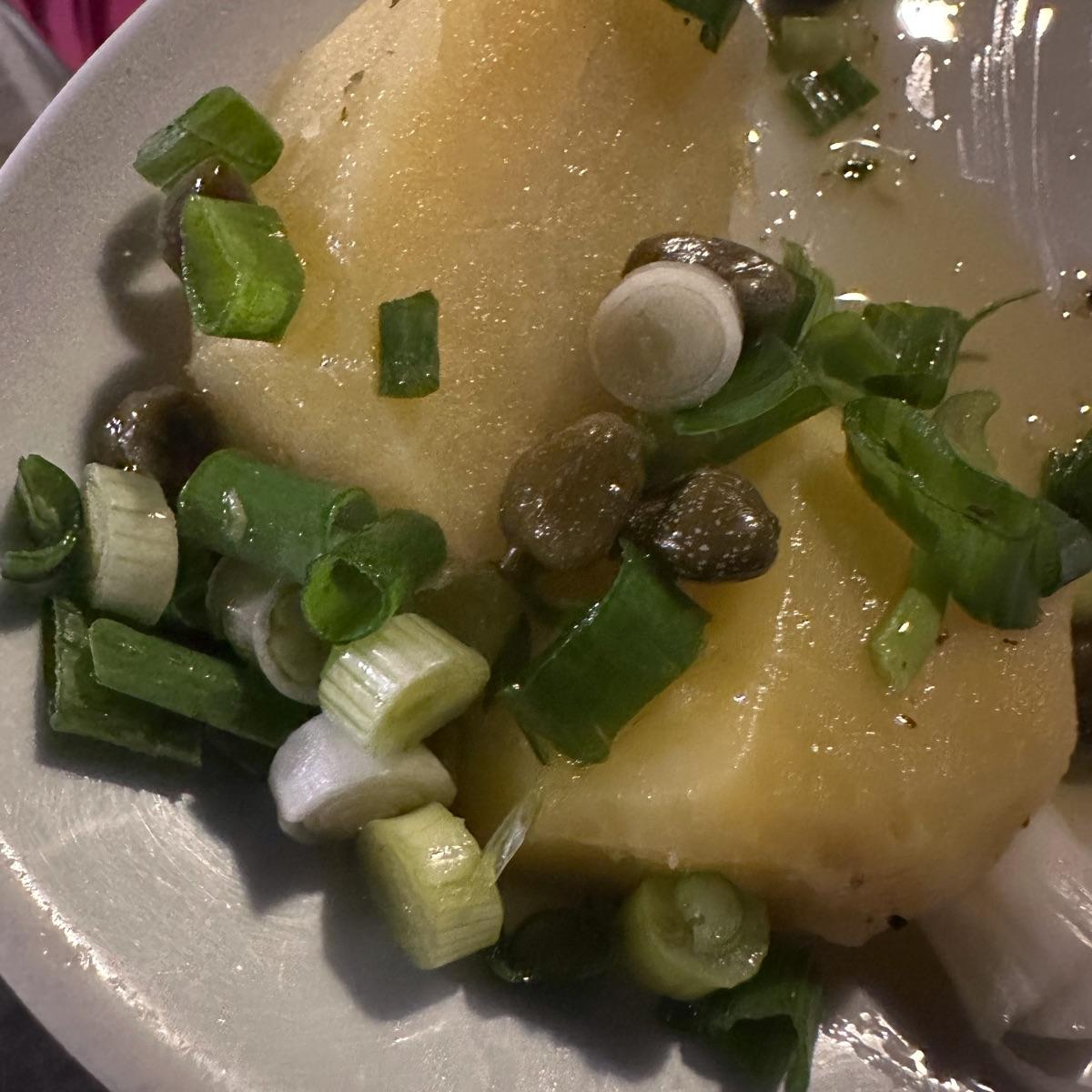 Oggi è stata la giornata delle patate… dopo il pranzo anche per cena. Le avevo viste su un tavolo passando e mi sembravano appetitose e originali. Per fortuna almeno lo erano. In questa tipica taverna greca non c’era praticamente altro di vegetale… nemmeno melanzane fritte… Le insalate purtroppo non sono mai semplici, pur facendo togliere il formaggio sono sempre stracondite e dopo un po’ non se ne può più… 😂