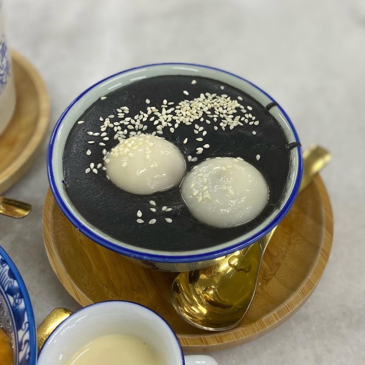 THIS WAS AMAZINGGG it tasted super thick and nutty, almost like it was made of 100% grinder black sesame. The tangyuans were rly nice too i esp love the peanut one!