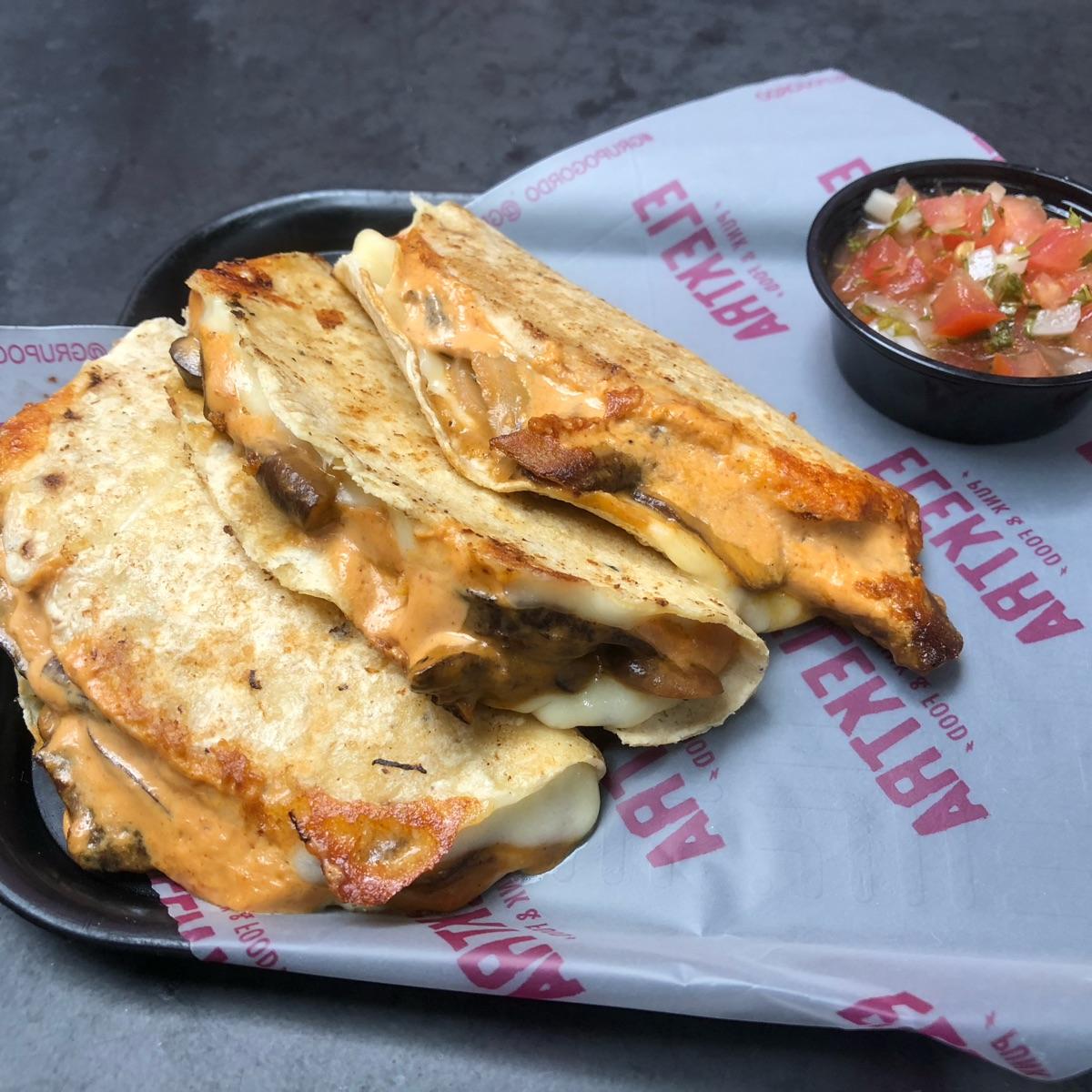 Pretty good vegan quesadillas. Not easy to find vegan cheese in Colombia so it's something to appreciate.
