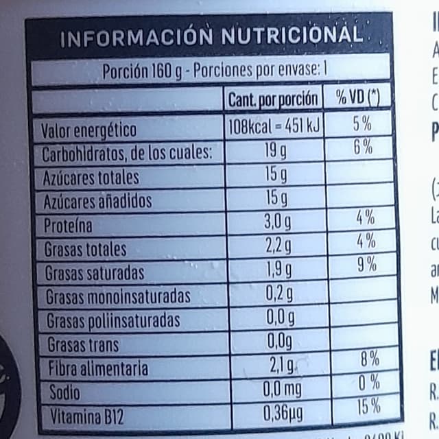 Valor energético 108 kcal.