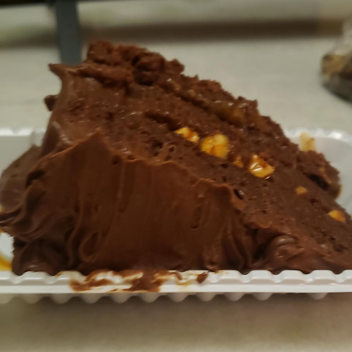 Bolo de chocolate. Pedi para viagem, pedaço é tão generoso que faz 3 dias que estou comendo