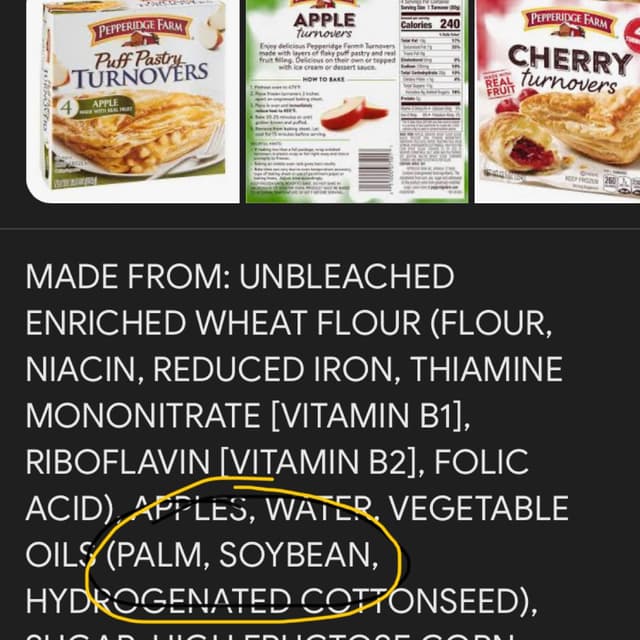 Per ingredients on package : vegetable oil ( palm, soybean) see photo
