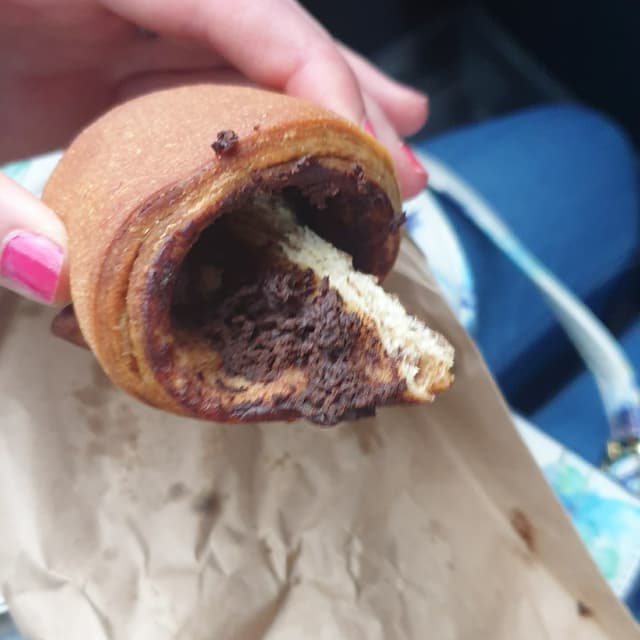 A little #snack for the road-trip. A little croissant-like #jewish/ #polish #pastry filled with #chocolate - if there's #vegan chocolate AND pastry, I'll find it!