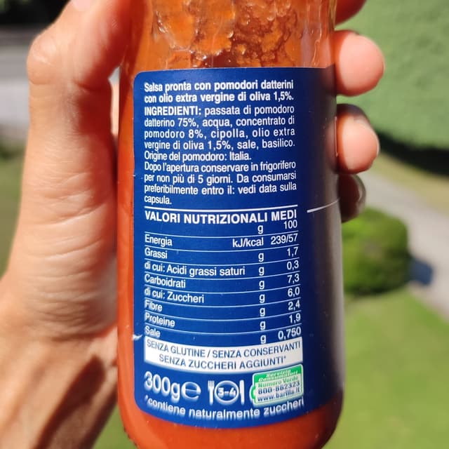 L'abbiamo usata per fare un piatto di pasta al volo da mia mamma. Non ho simpatia né per i sughi pronti né per il marchio Barilla ma devo dire che rispetto ad altri sughi pronti non ha quell'orribile retrogusto di artificiale e chimico. Essendo a vase di datterini tende al dolce ma comunque ben equilibrata.