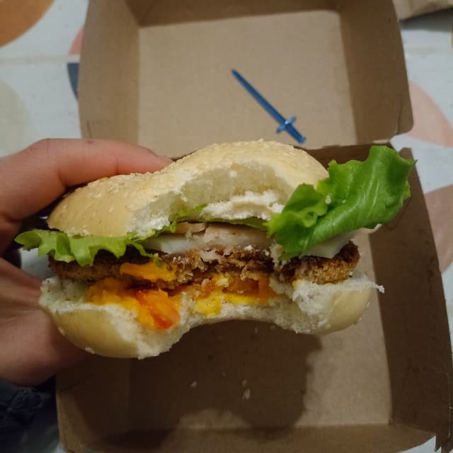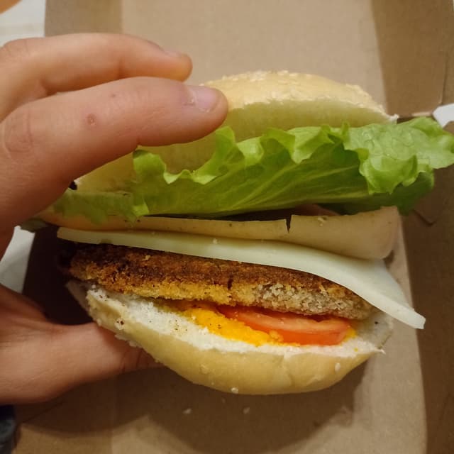 Me gustó mucho. Me resultó una buena opción para cuando no quería cocinar pero quería comer algo de legumbres que a su vez sea rico. La mila estaba rica y crocante. Viene con mayonesa de zanahoria, tomate, lechuga, jamón y queso vegano y pan lleno de semillas. Hay opción con o sin papas.