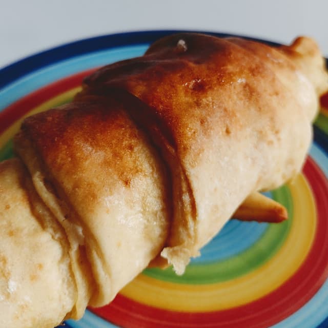 Riquísimo cruasán dulce, que venía con almíbar en la parte superior. Muy generoso el tamaño. Súper mullido y delicioso. Lo recomiendo.