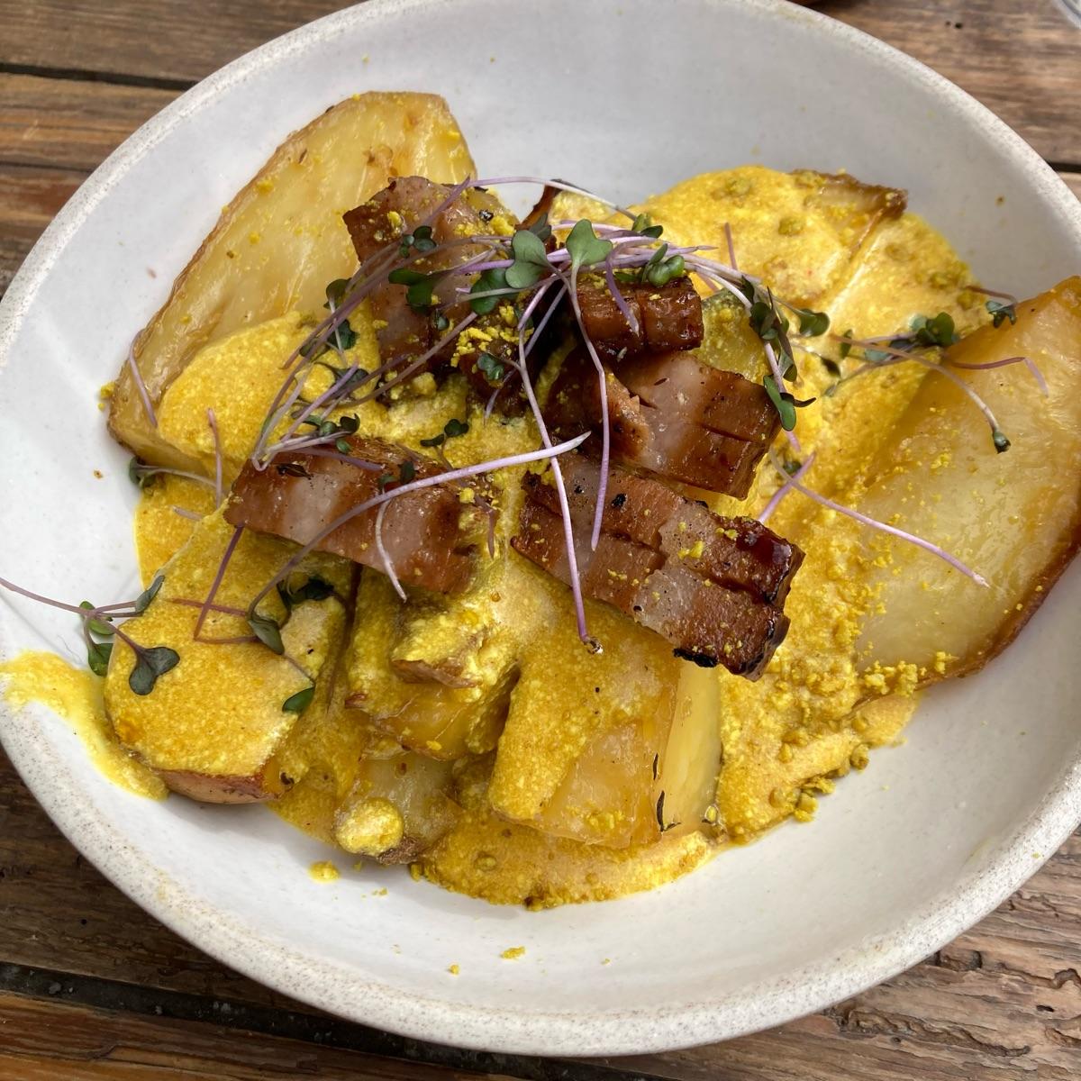 La panceta tenía una textura llamativa, para bien.