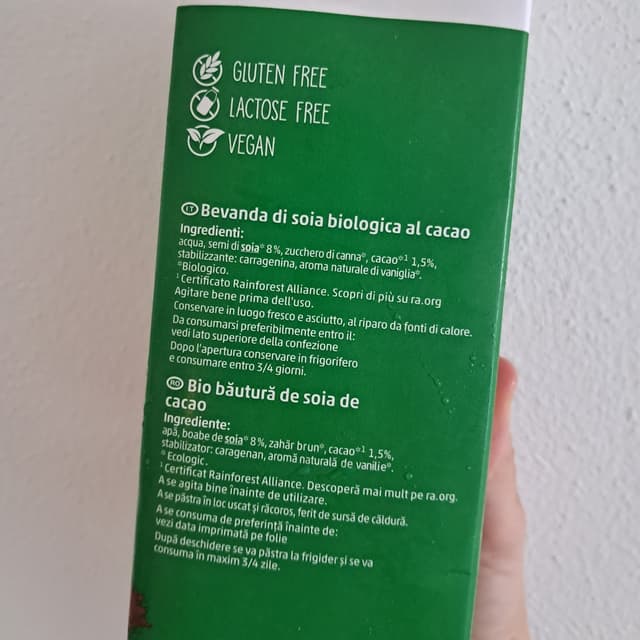Il mio ragazzo adora questo latte di soia al cacao! Io l'ho provato ed è buono, anche se a volte si formano dei grumi abbastanza grandi. A livello di valori nutrizionali preferisco altri brand, onesta, perché questo eccede abbastanza con gli zuccheri ed essendo un soggetto a rischio resistenza insulinica per me sarebbe meglio che non si superassero i 5 g di zucchero ogni 100. Comunque, buon prodotto!