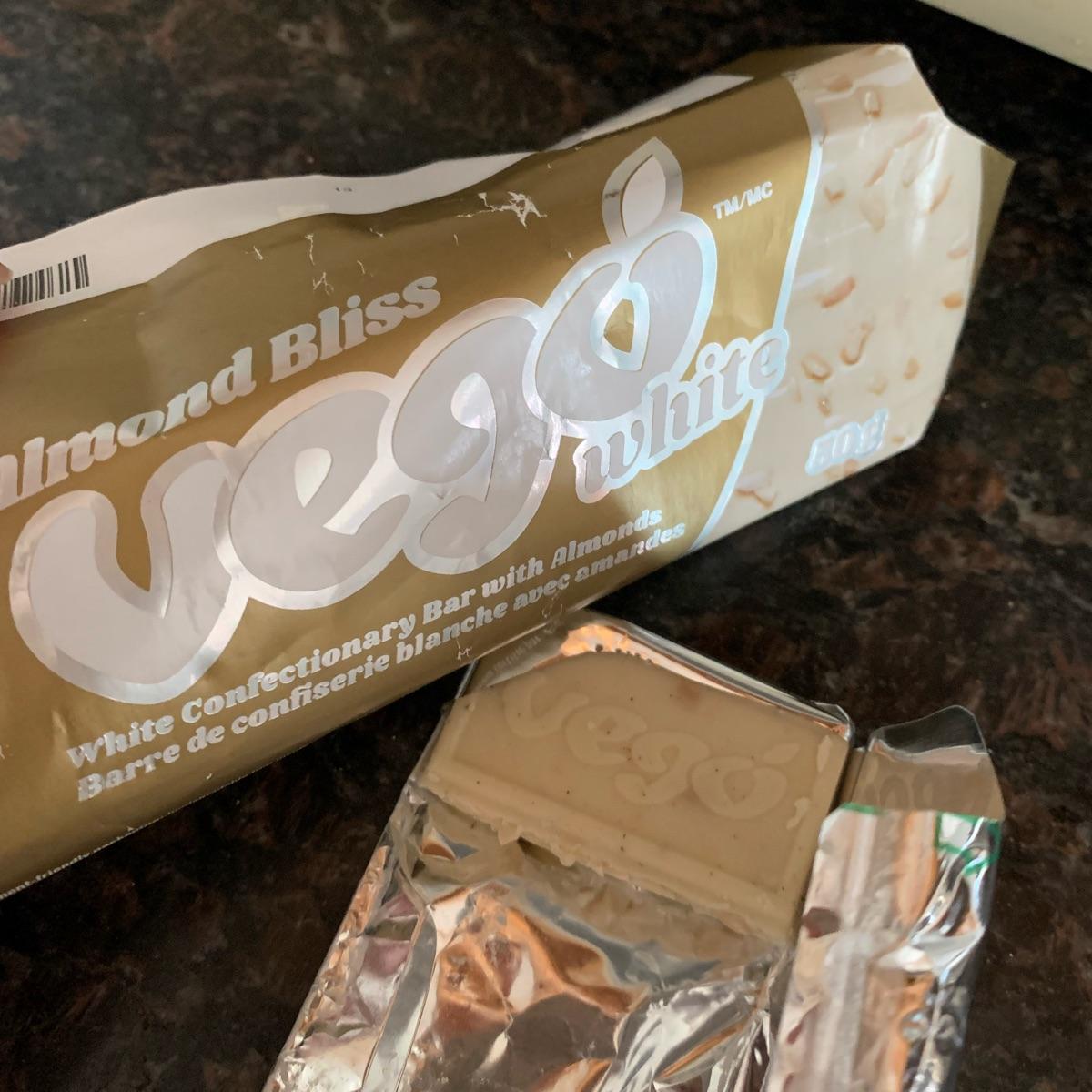 White chocolate almond bits 😋 sweet & creamy. Great packaging