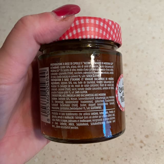 Amo la marmellata di cipolle da accompagnare a dei formaggi.Ci sta molto bene.VOTO: 10/10