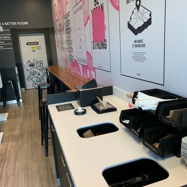I really like that the company is not afraid to use the word “vegan” to describe its food and post vegan messages on its walls.