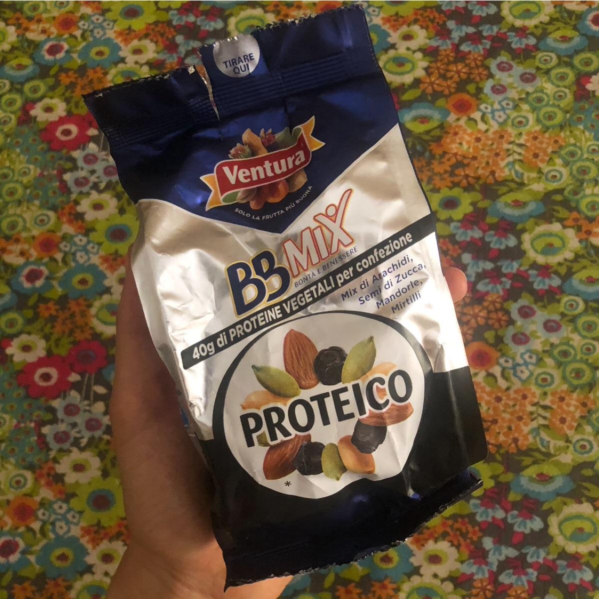 Mix di frutta secca (mandorle, arachidi, semi di zucca, mirtilli) molto buono, 40 g di proteine vegetali per confezione, uno spuntino super valido e sano.