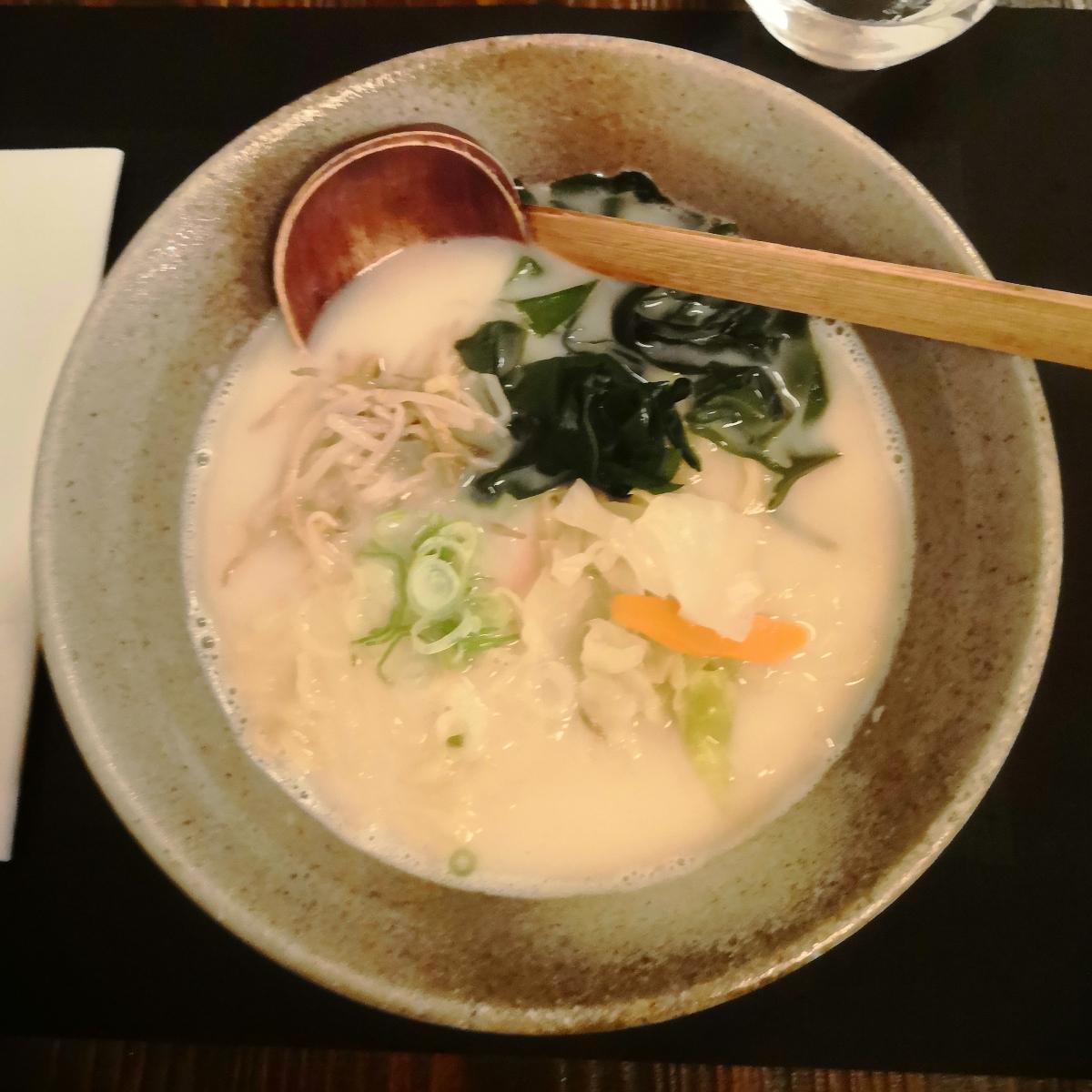 Ottimo ramen a base di brodo di miso e con tapping vegetale. Gli ingredienti del topping sono stagionali e attualmente erano presenti: alghe, cavolo, carote 3 germogli di soia