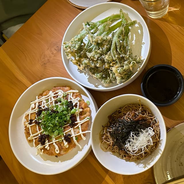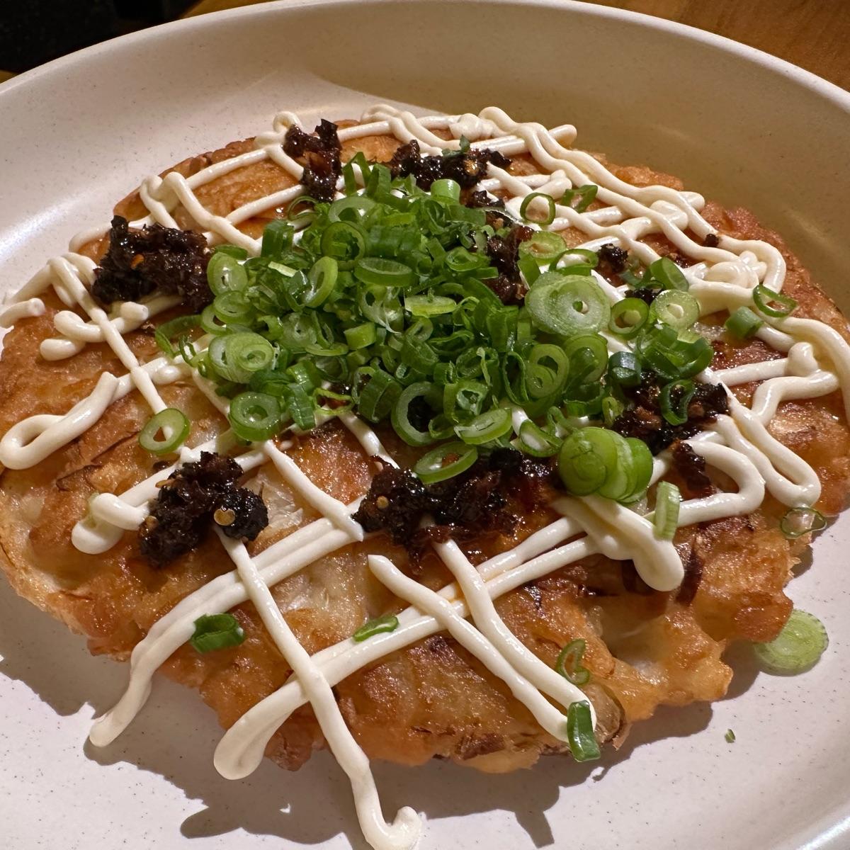 The seafood pancake 🥞 topped up with plant based prawns 🍤 Squid 🦑. Oatside milk as the based and some Lao Gan Ma chilli, Mayonnaise and spring onions!! Super yummy 🤤